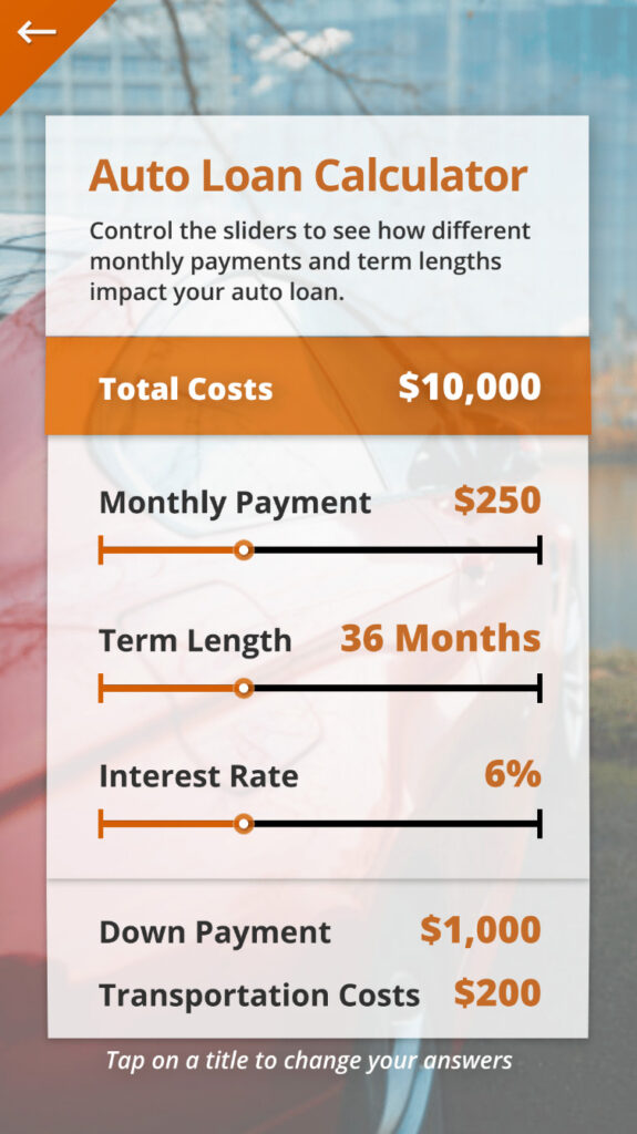 The development of custom calculators to provide additional value to app users there served as an interactive “hook” to keep users coming back as they progressed through their financial experiences (i.e. car purchases, loans, home, etc.)